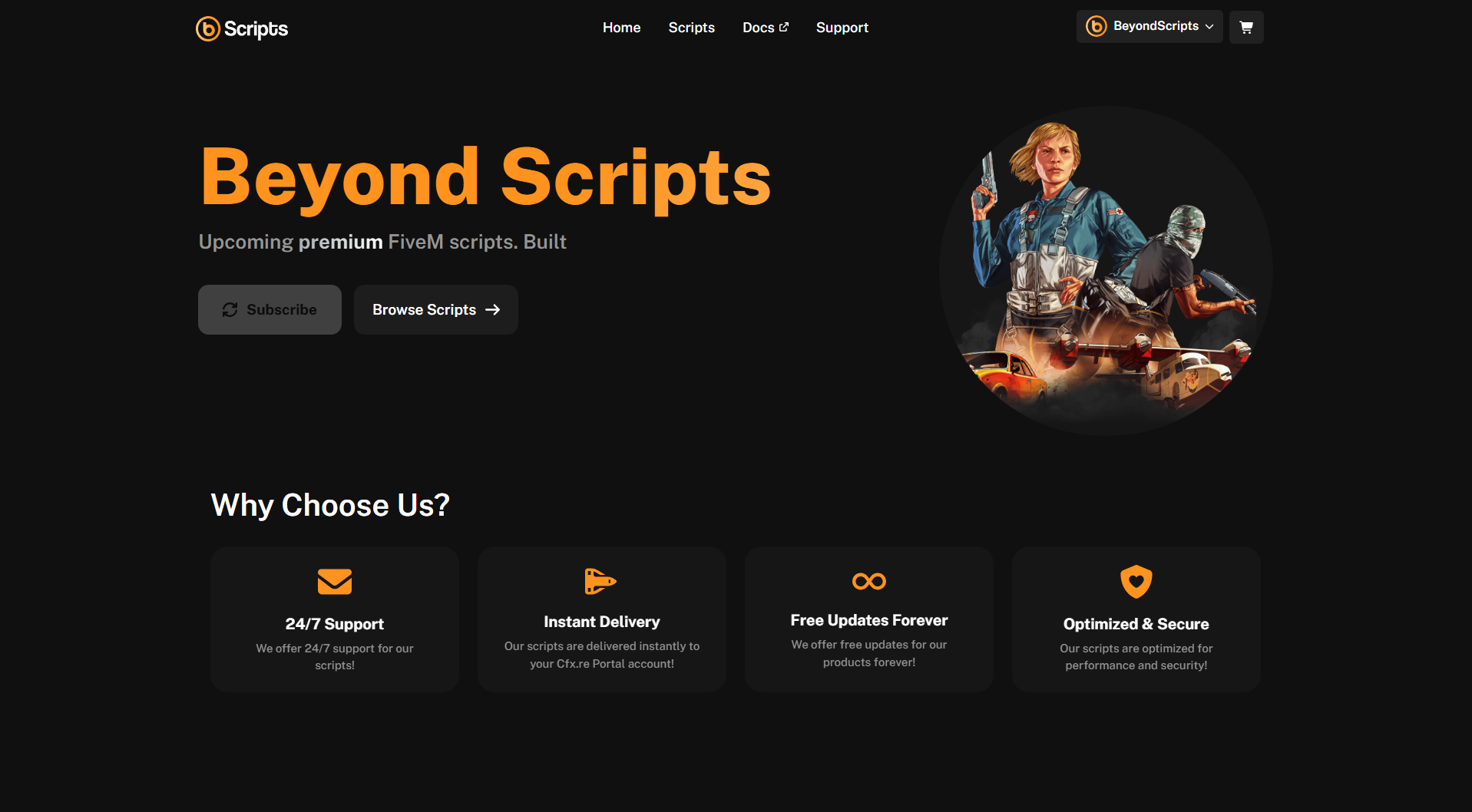 I created Beyond Scripts early 2026, ive always wanted to become a creator for FiveM and bring new and exciting resources to the community. So i finally decided to start creating my own resources and bring my ideas to life.